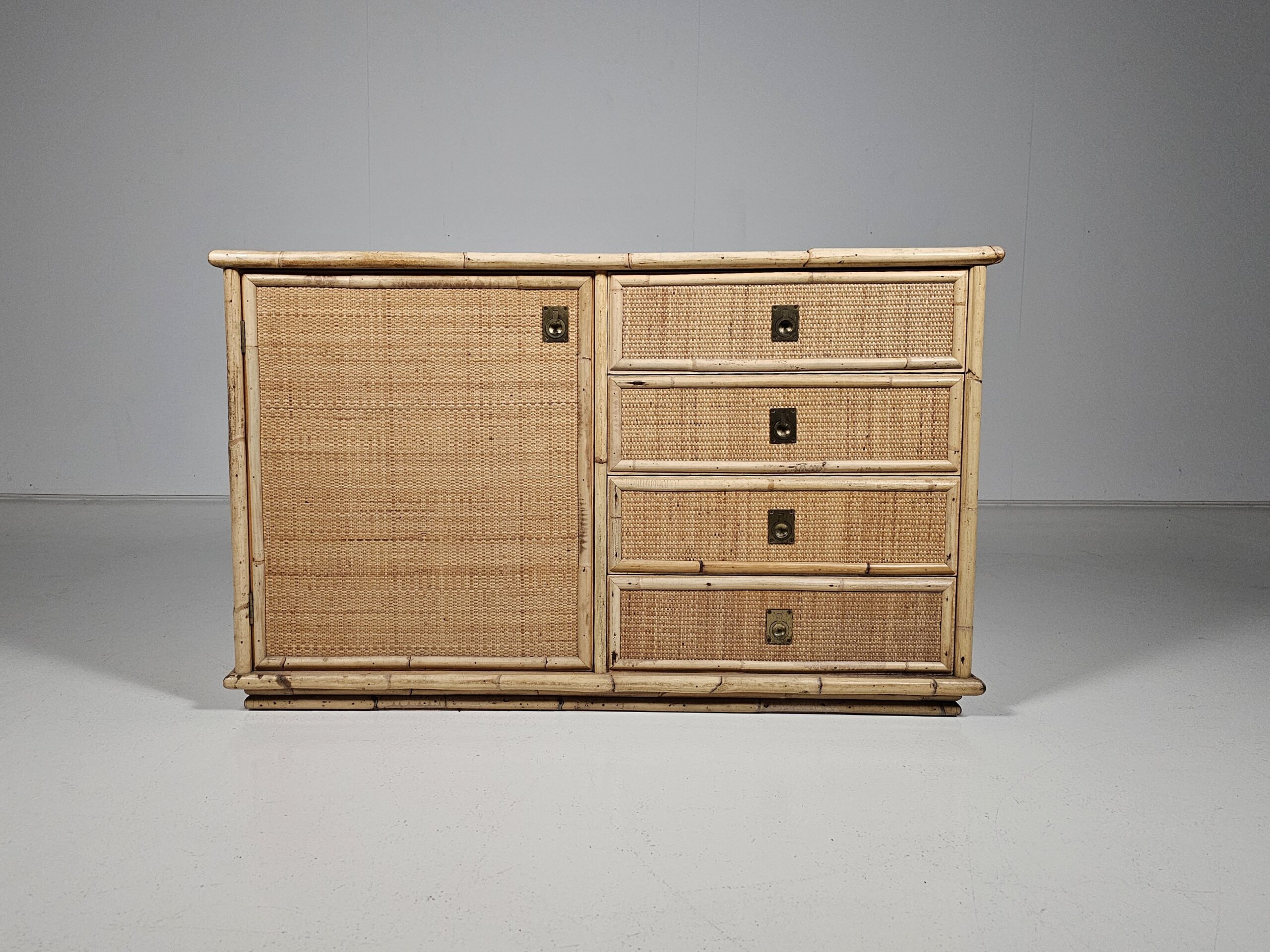 Bamboo/Rattan and Brass cabinet by Dal Vera, Italy, 1970s