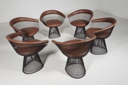 Warren Platner dining chairs in bronze and brown leather, Knoll International