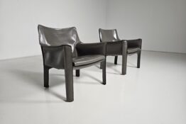 Set of 2 Cassina CAB-414 armchairs in grey leather by Mario Bellini, 1980s