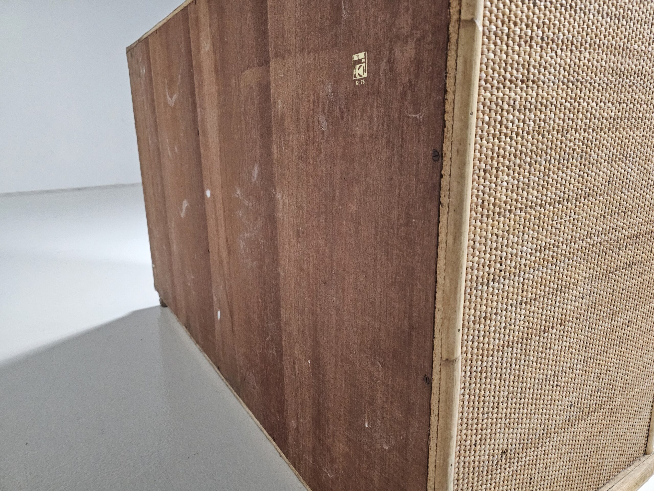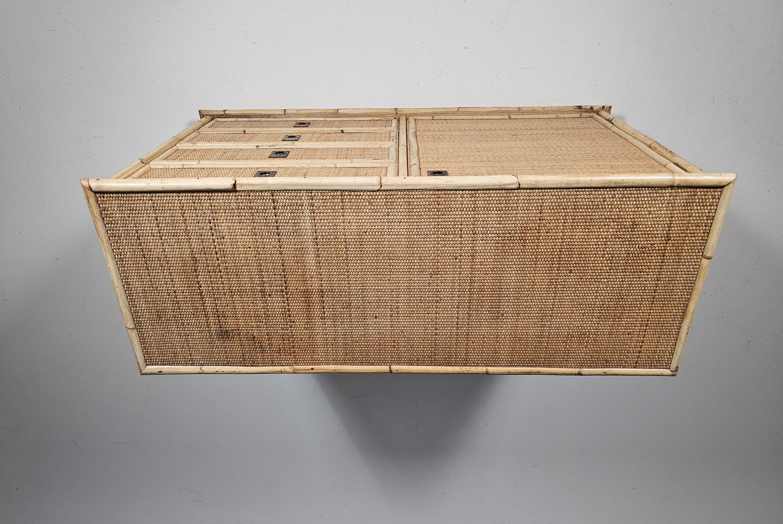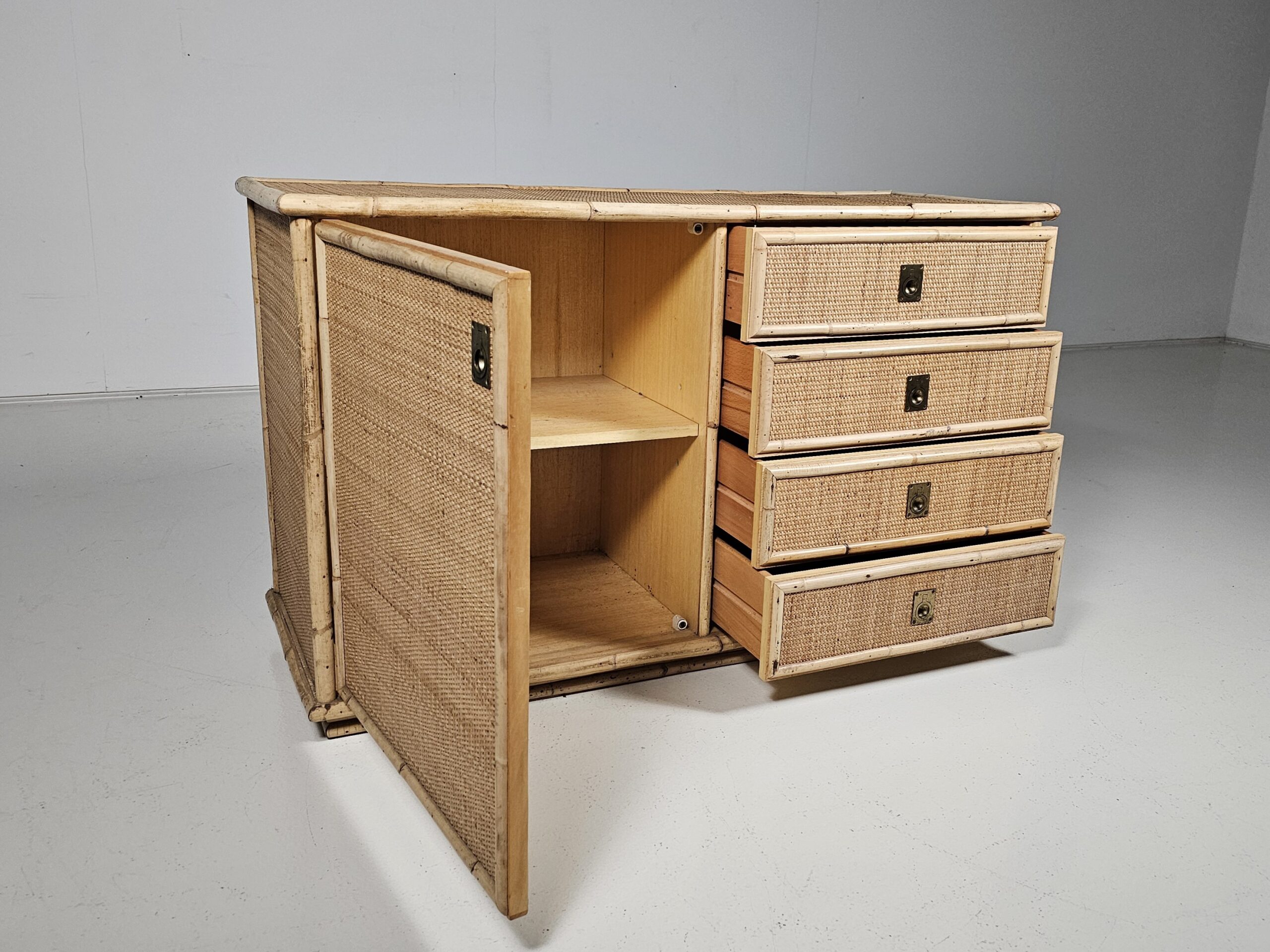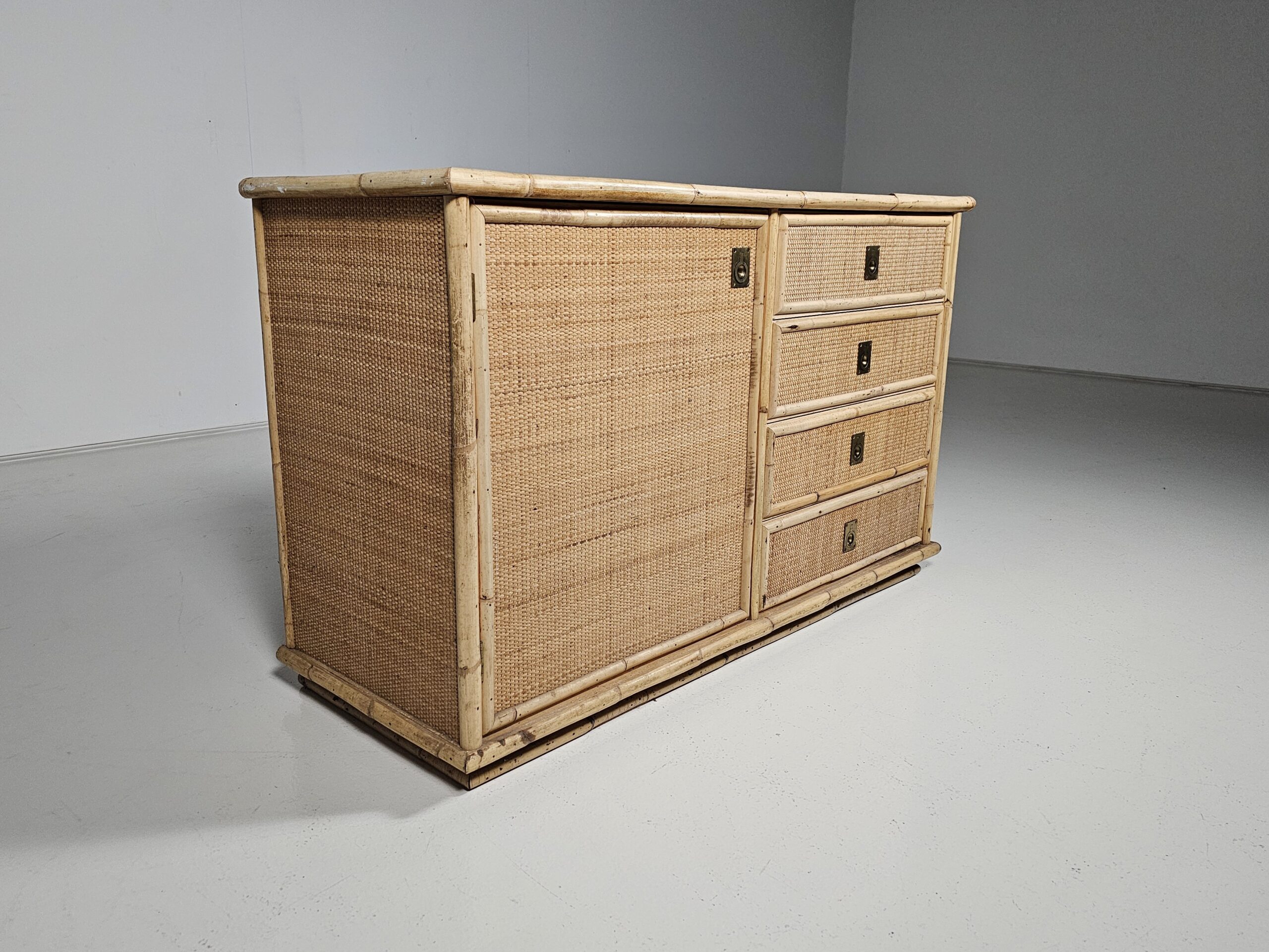 Nice mix of bamboo, rattan raffia wicker and brass handle commode by the manufacturer Dal Vera.