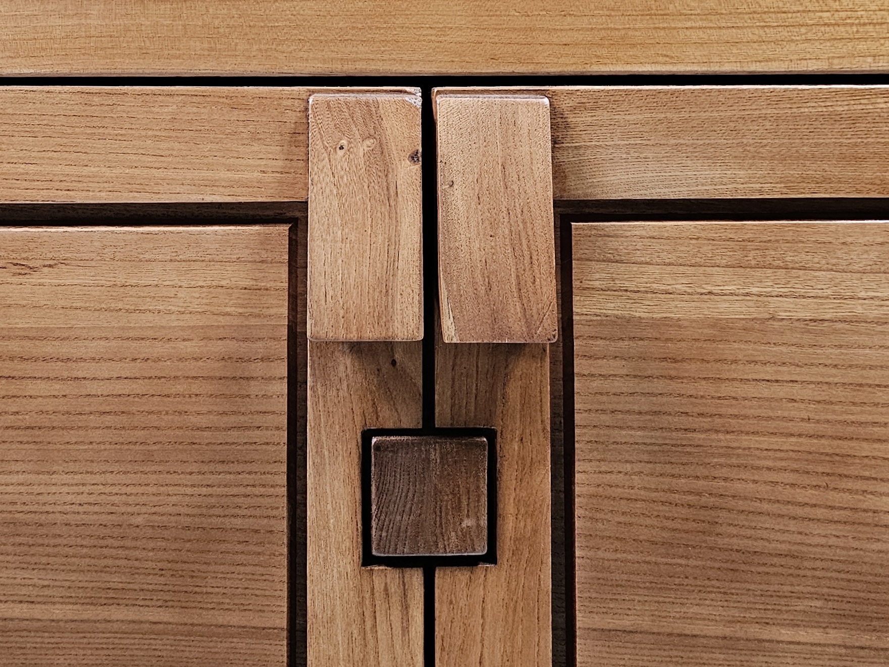 This stunning credenza combines a simplified yet complex design with nifty, solid construction details that characterize Chapo’s work. The well-proportioned doors and drawers are geometric and identical. This is in contrast with the asymmetric composed drawers, where the left drawer is narrow and the right drawer wide. Yet together, it forms a unified whole.