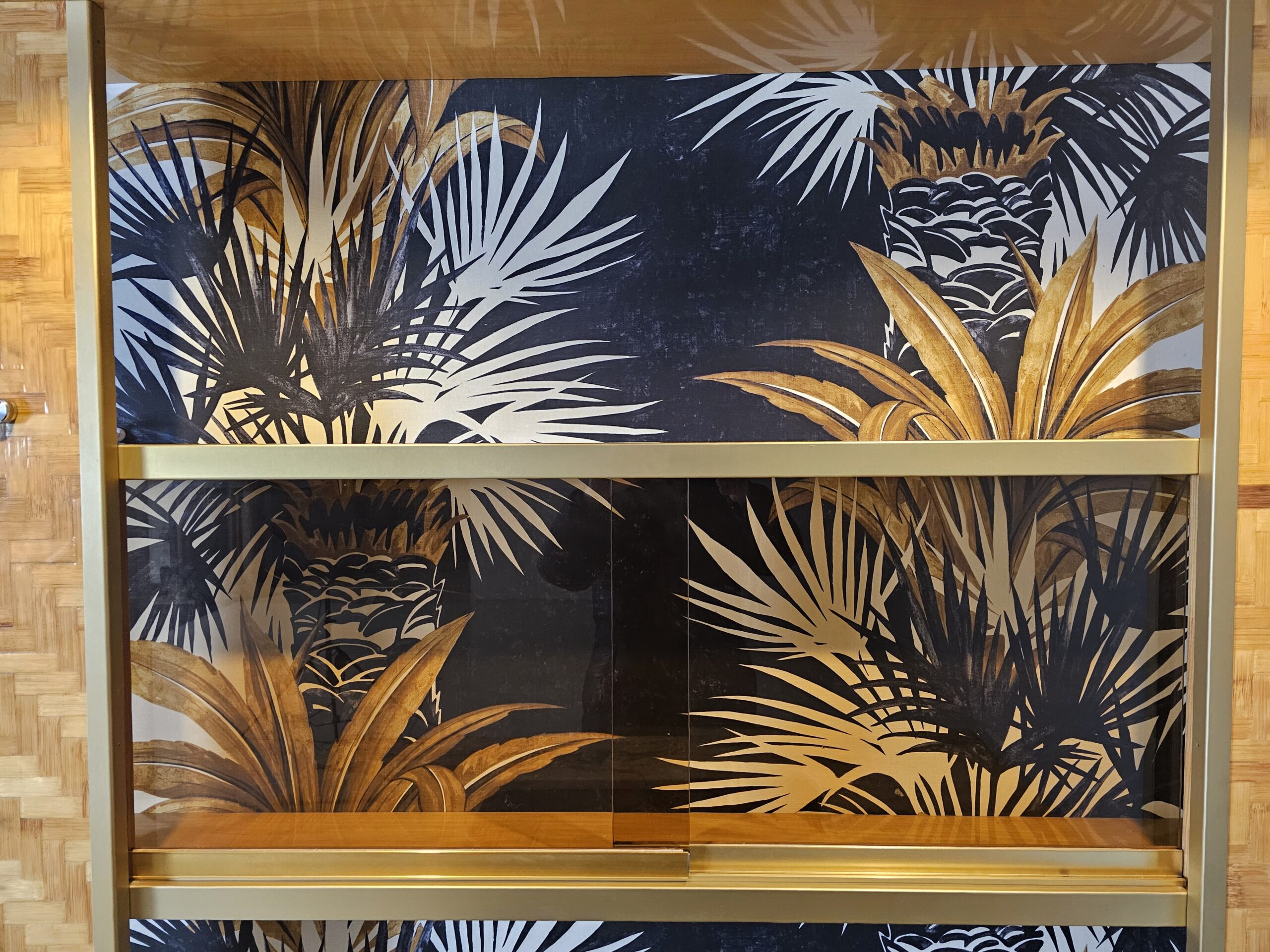 Harmonious blend of warm and rich tones. This cocktail bar is more than just a functional piece; whether entertaining guests or simply enjoying a quiet evening, this bar embodies the perfect blend of vintage charm and contemporary elegance, making it a lovely piece for enthusiasts of fine design.
