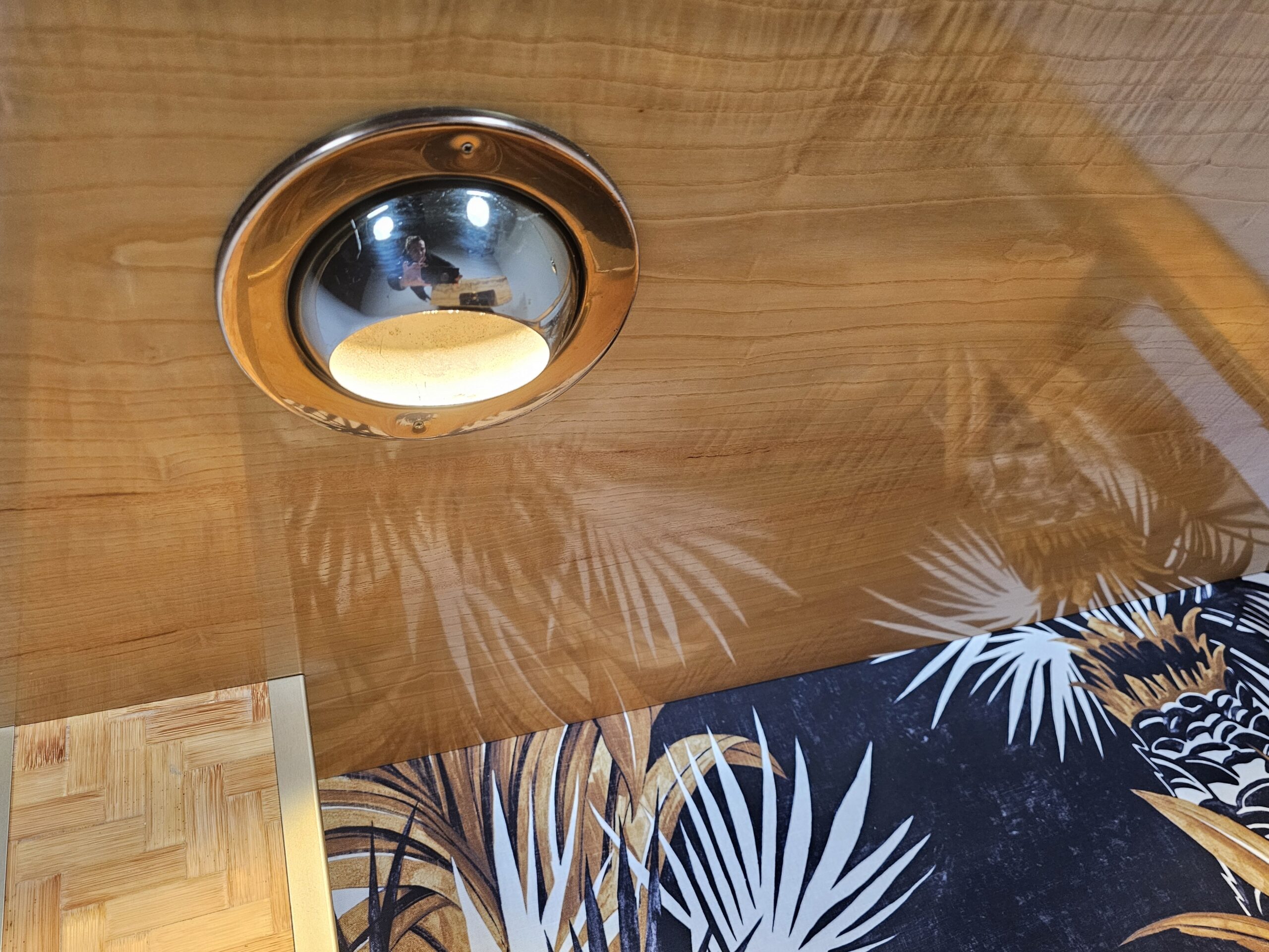 Backpanel and stools reupholstered in a stunning fabric by La Maison Pierre Frey