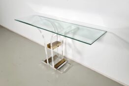 Hollywood Regency style lucite, brass and glass console table, France, 1970s